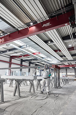 Auf der Suche nach einem geeigneten Ersatz, war eines schnell klar: Selbst moderne Dunkelstrahler würden dem Stahlfertiger nicht mehr in die Halle kommen. Auch Umluftheizungen waren keine Option, denn die Luftbewegung hätte Staub und Schmutz ins Gewerk gebracht. Zudem bringt die tägliche Arbeit mit Stahl einen ganz eigenen Anspruch mit sich, wie Stefan Voit erklärt: „Wir benötigen die Wärme für die Funktionstüchtigkeit der Maschinen, dafür muss sie möglichst gleichbleibend und gleichmäßig verteilt bereitgestellt werden. Temperaturänderungen wirken sich beispielsweise stark auf Krananlagen aus, wie sie in den Hallen allesamt unter der Decke installiert sind. Die gesamte Stahlkonstruktion dehnt sich bei wechselhaften Temperaturen messbar aus oder zieht sich zusammen. Dadurch kann sich der Kranwagen verkanten, Schienen können sich verschieben und die